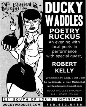 The Ruthless Hippies of Leucadia are dedicated to forging new frontiers in live performances of all varieties. They are motivated by fun, art for art’s sake, community, and the possibility of a cleaner world. Through the mediums of poetry and music and this blog the Ruthless Hippies will help cultivate community awareness and involvement in local events, small business, and environmental care. We strive to promote the vibrant cultural community of San Diego County.